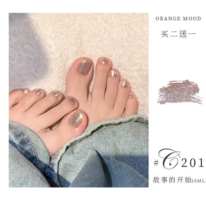 orange亮片指甲油女免烤持久快干2025春夏新款可撕拉脚趾裸色护甲