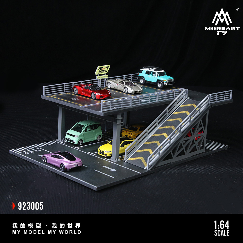 钢架结构平台 停车场拼装场景 汇艺MoreArt 1:64仿真汽车模型摆件