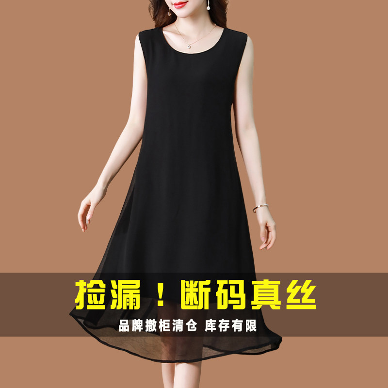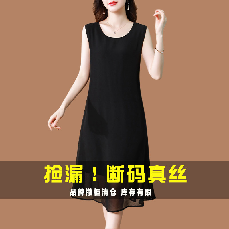 唯哥弟风2025夏季新款真丝连衣裙宽松大码无袖桑蚕丝背心打底裙女
