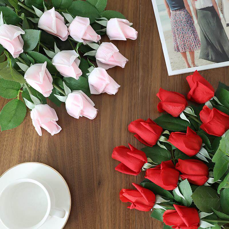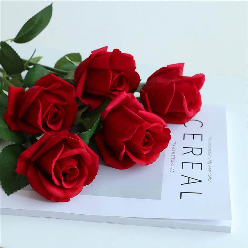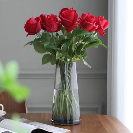 高档手感保湿玫瑰花彷真花束假花客厅室内餐桌花插花摆设装饰红色