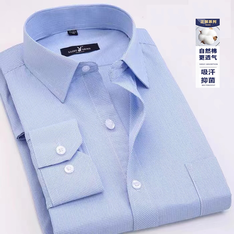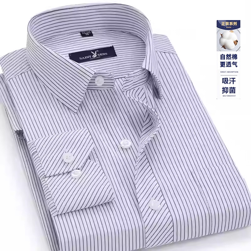 春秋薄款男长袖衬衫休闲中年父亲装商务条纹高棉衬衣男装宽松大码