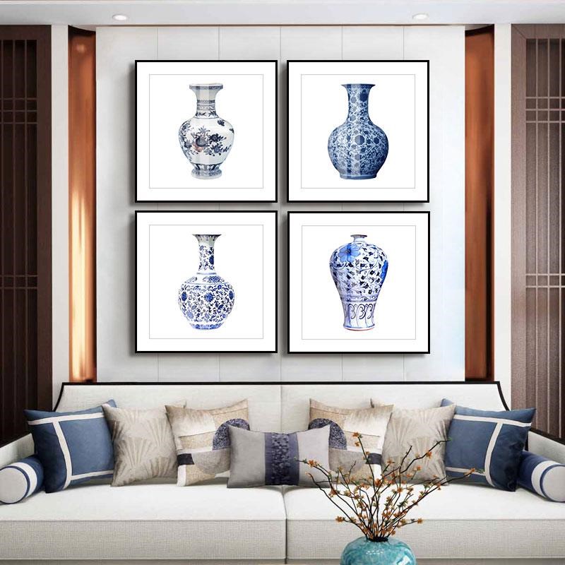 青花瓷装饰画新中式客厅挂画w茶室画餐厅墙面装饰陶瓷瓷器花瓶壁