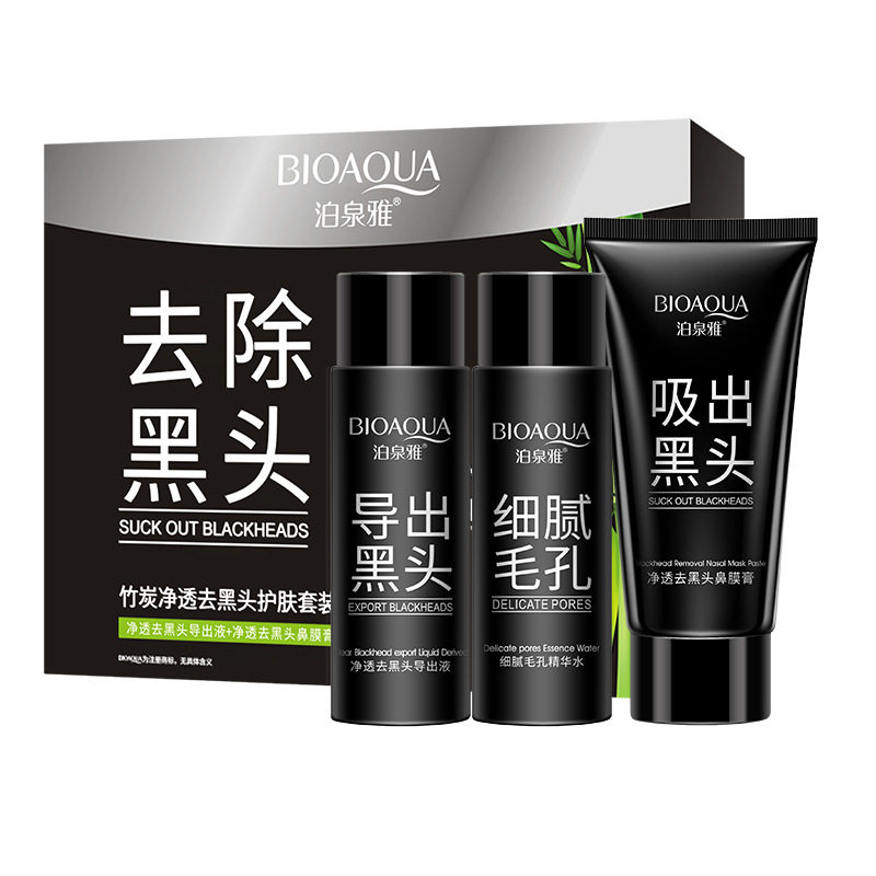 泊泉雅BIOAOUA竹炭套装收缩毛孔鼻贴鼻膜黑头导出液T区护理伯柏全