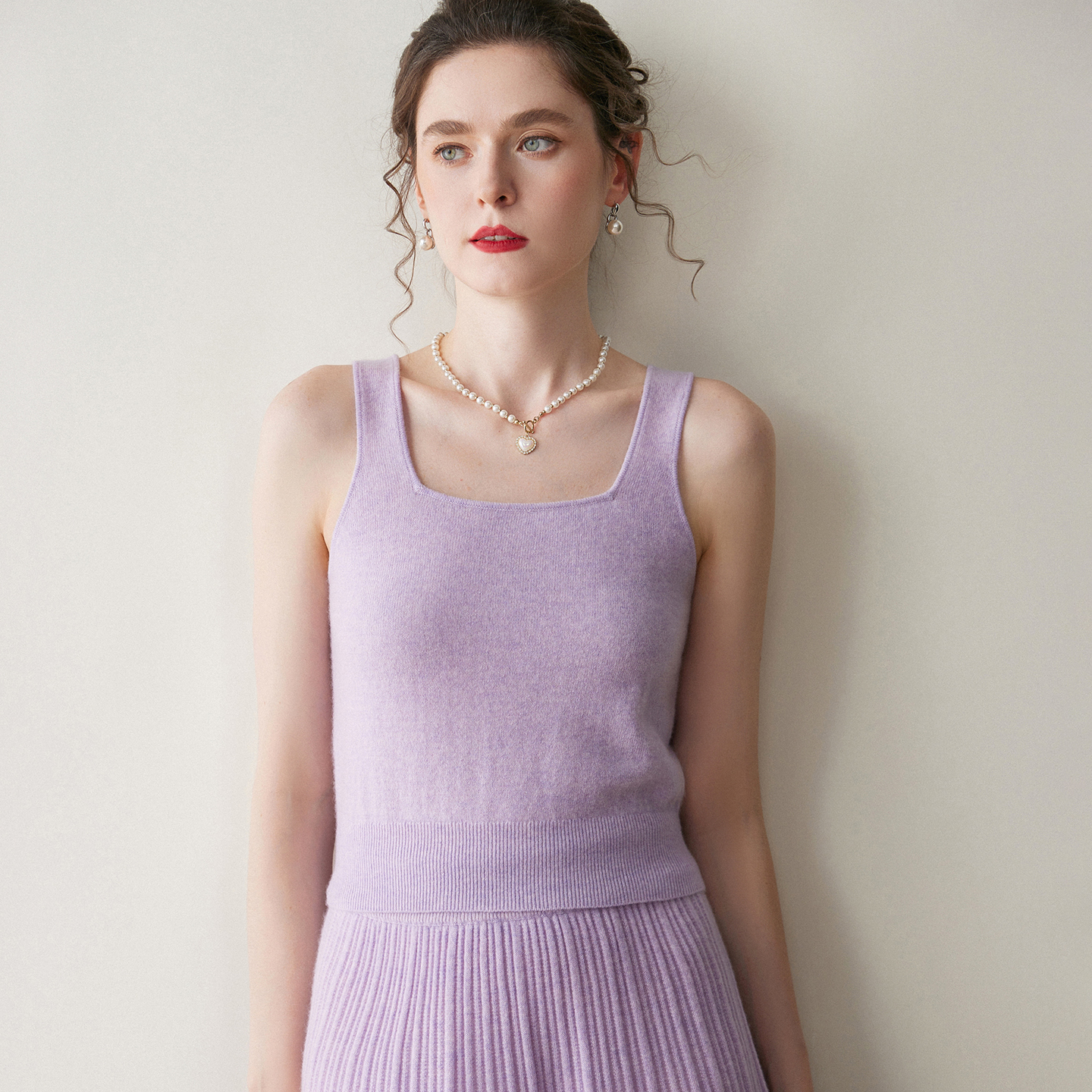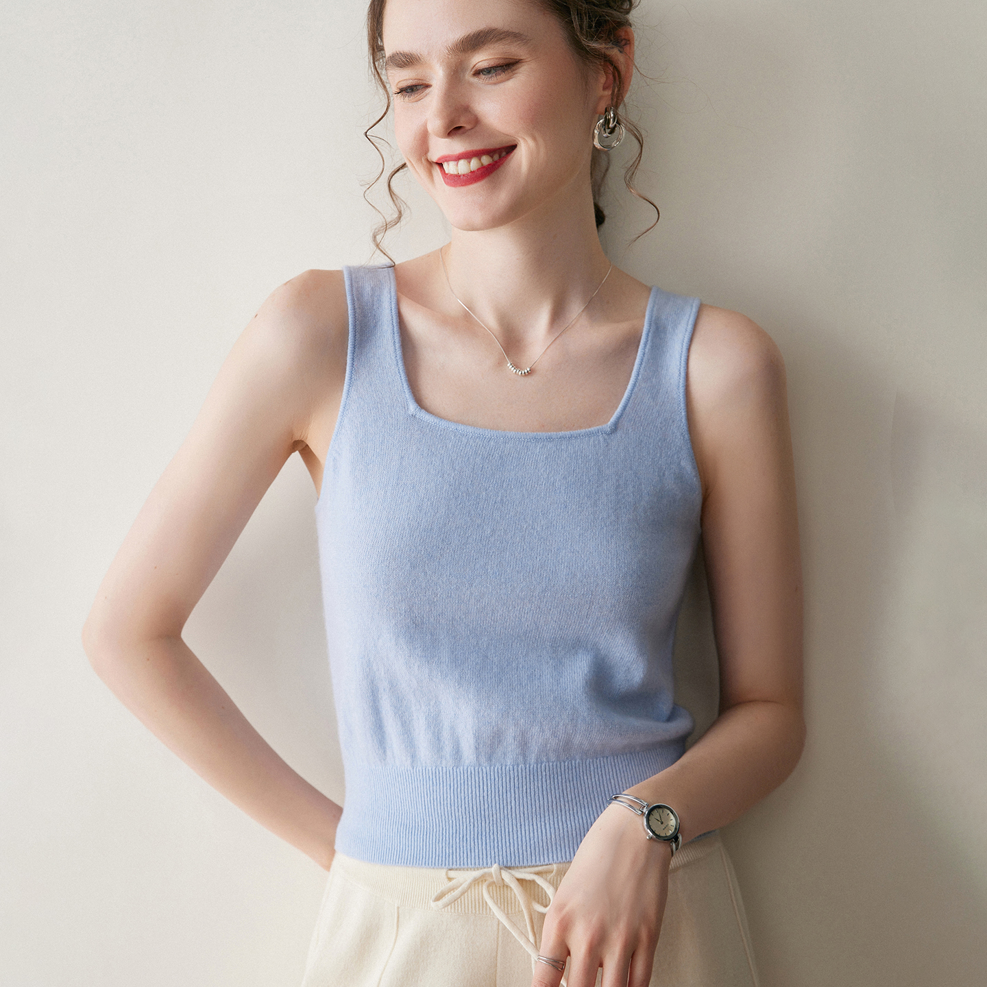 方领山羊绒吊带背心女内搭外穿无袖套头针织显瘦小短款羊毛打底衫