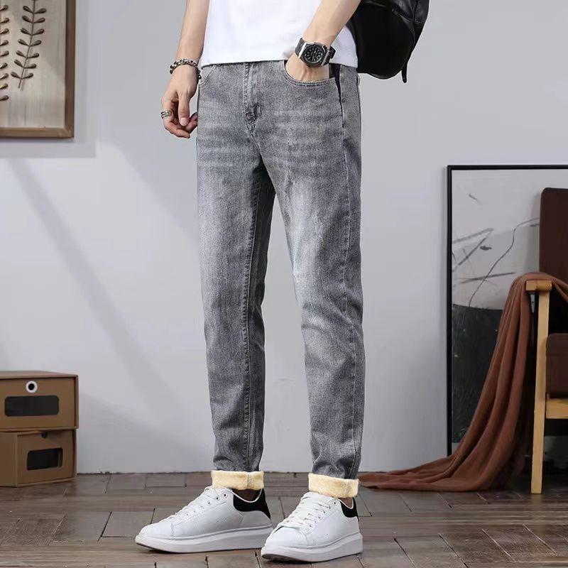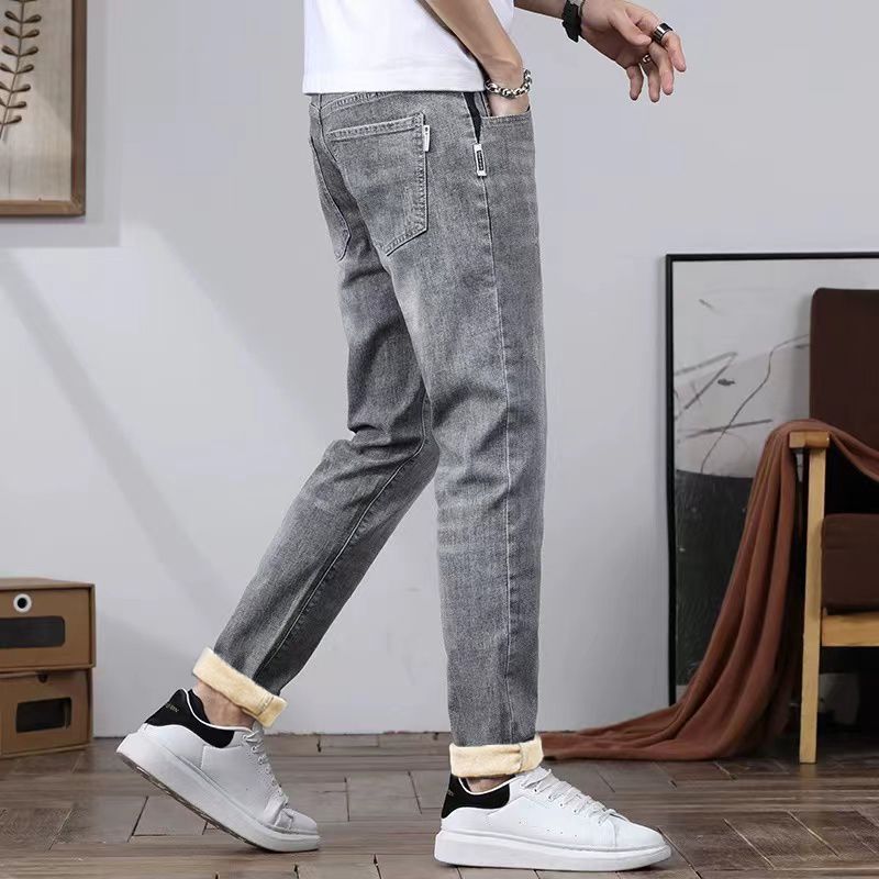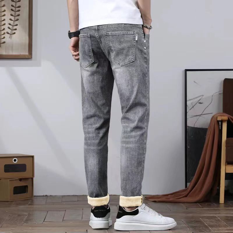 2025冬季牛仔裤男加绒加厚直筒修身宽松弹力保暖休闲长裤子男士