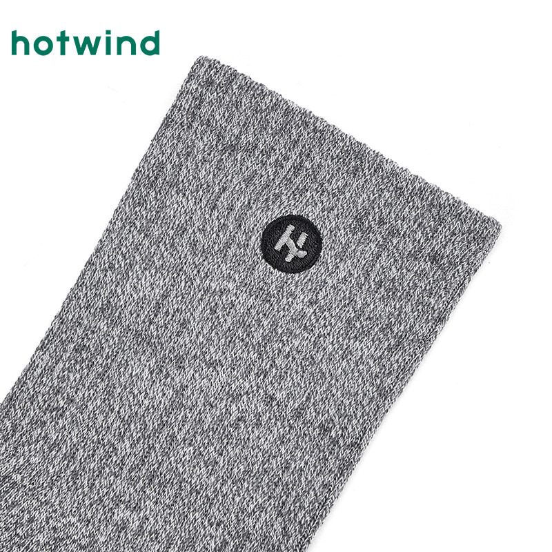 热风男士中筒袜子2025年秋季新款小标刺绣中帮袜亲肤弹力男袜子