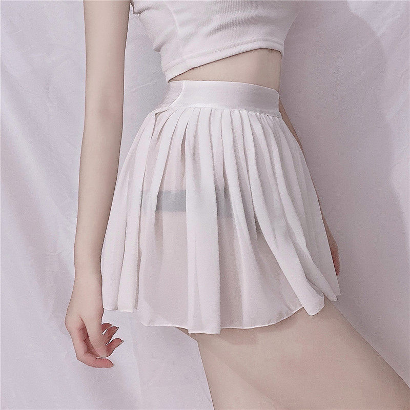高腰雪纺伪娘半身裙透明cd变装纯色打底短裙男反串女装大佬百褶裙