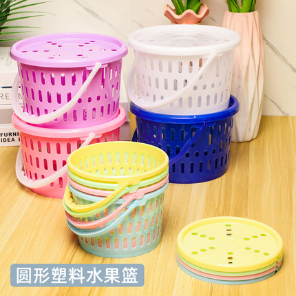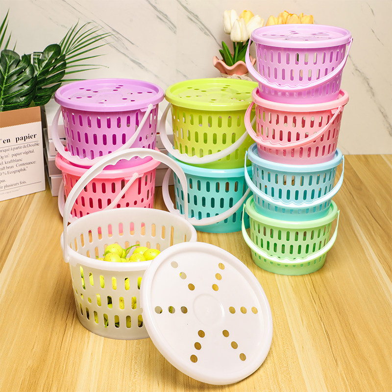 樱桃采摘篮彩色手提篮带盖塑料篮水果篮1斤2斤圆形果篮果园草莓篮