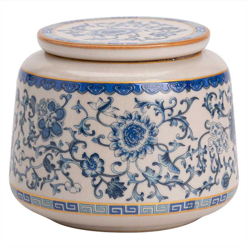 青花汝窑陶瓷茶叶罐茶叶包装密封罐通用存储茶罐家用绿茶红茶普洱