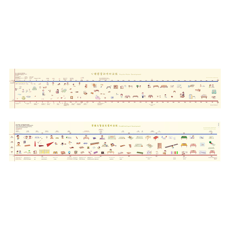 蒙氏生理图表蒙台梭利AMI 03/36幼儿心理感官动作时间线益智礼物
