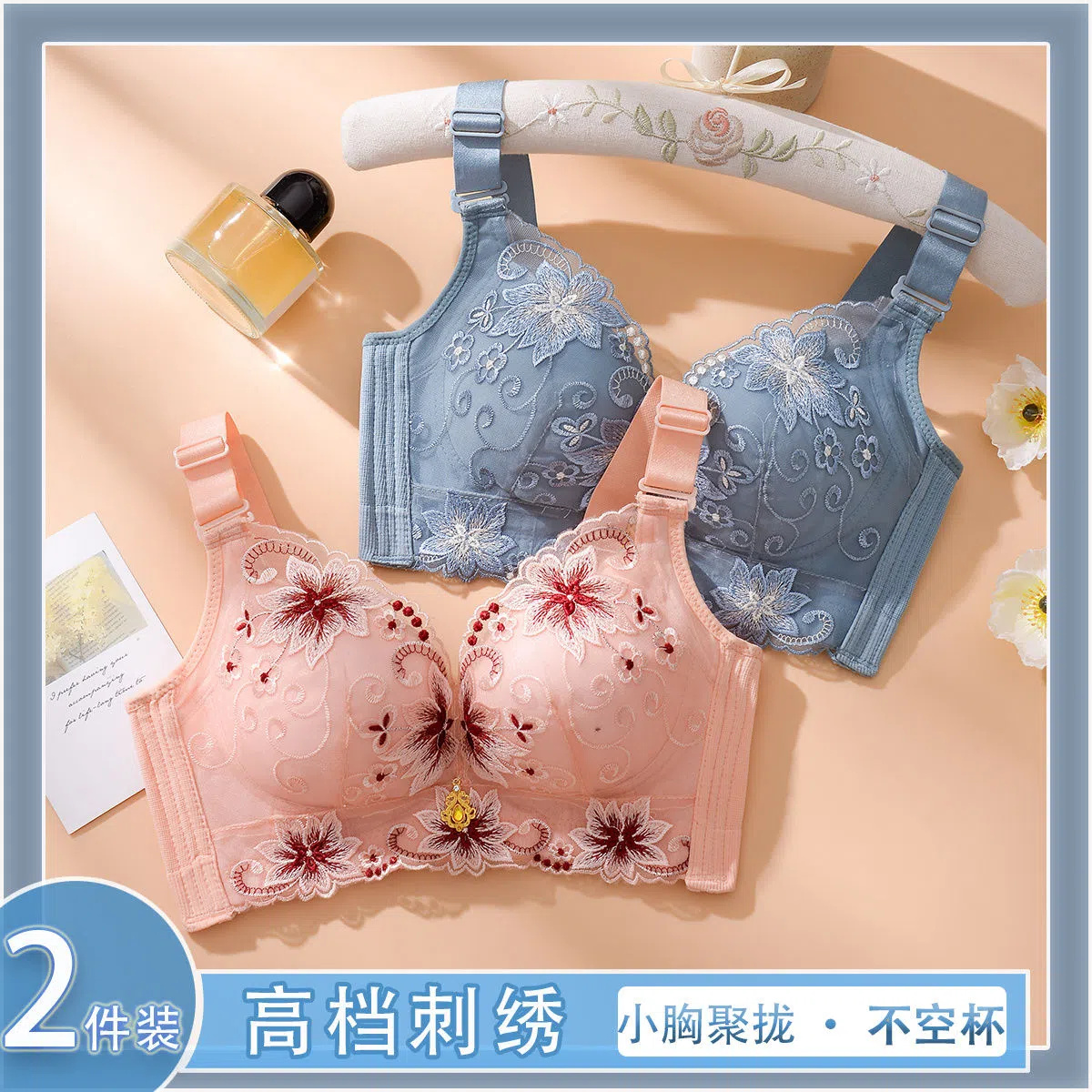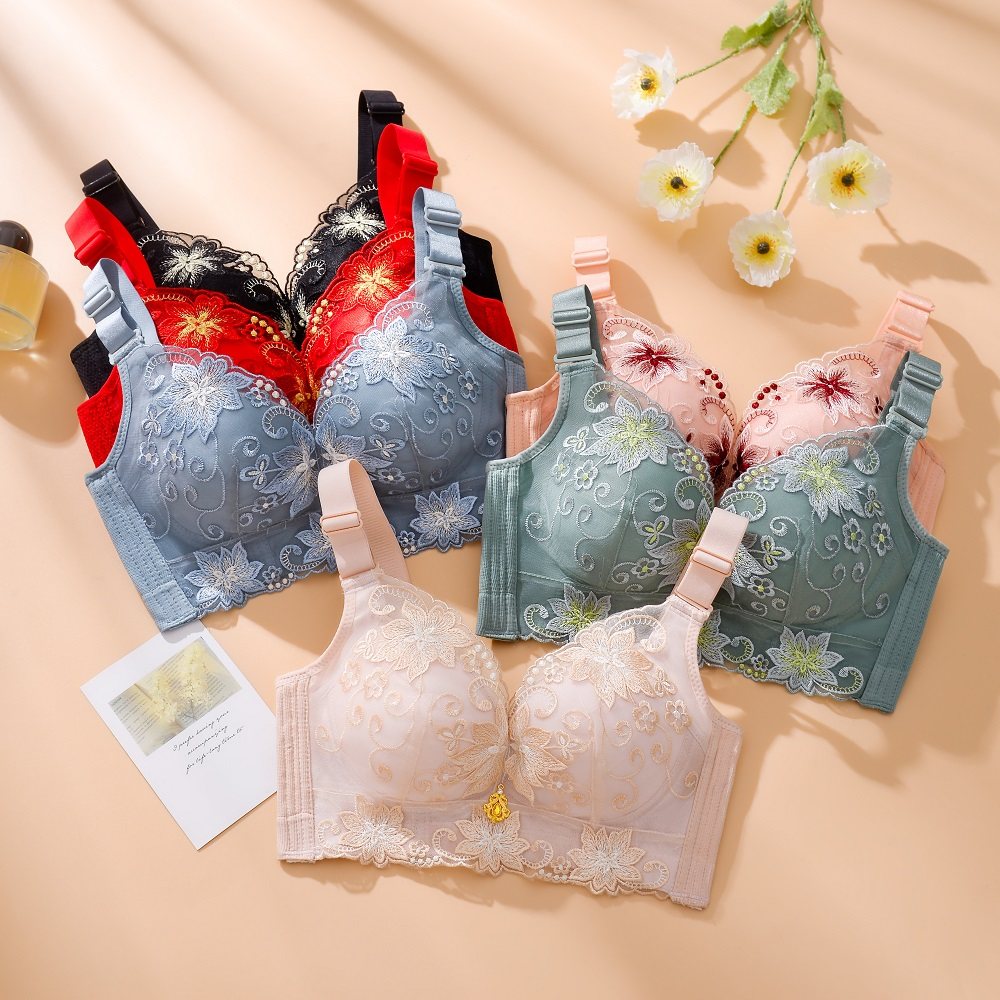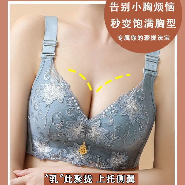 刺绣内衣女无钢圈聚拢小胸专用加厚女士胸罩收副乳调整型上托文胸