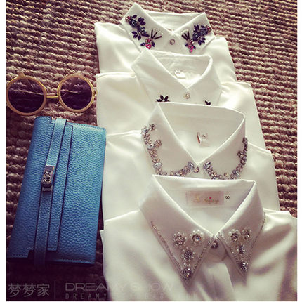 镶钻衬衫女带钻领子钉珠水钻秋冬