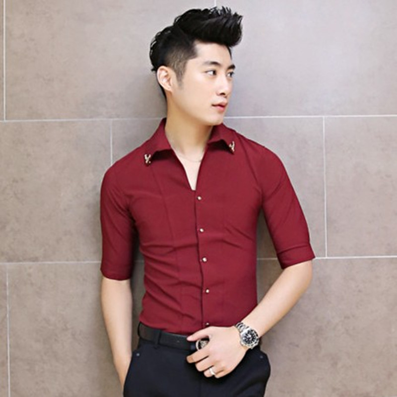 夏装美发师理发店酒吧KTV足浴服务员工作服男生修身短袖衬衫衬衣