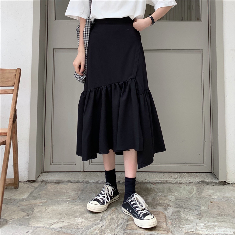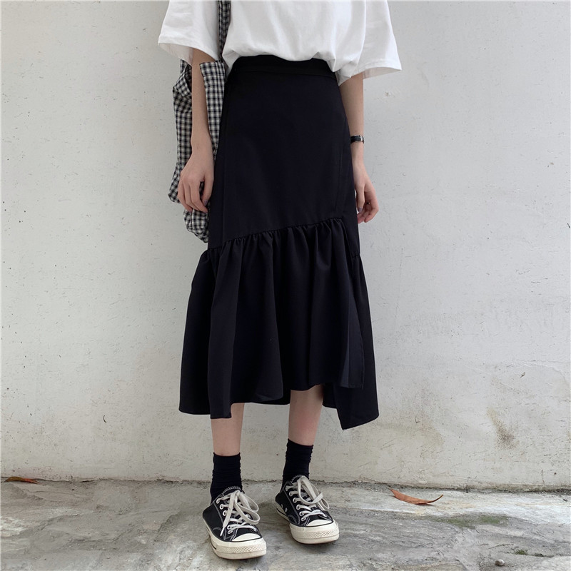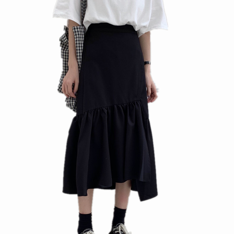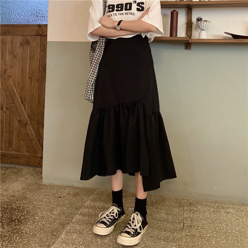 大码不规则半身裙中长款褶皱裙子女胖mm松紧高腰包臀a字长裙学生