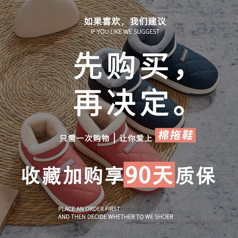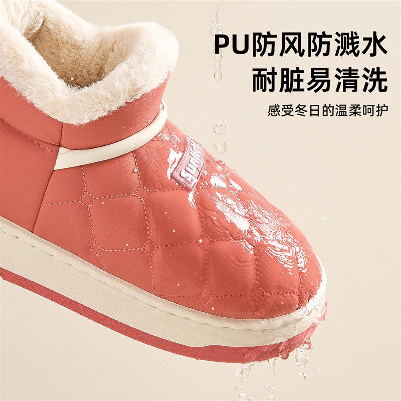 包跟棉鞋男士冬季外穿PU防水2025新款加绒中老年棉拖鞋女家居室内