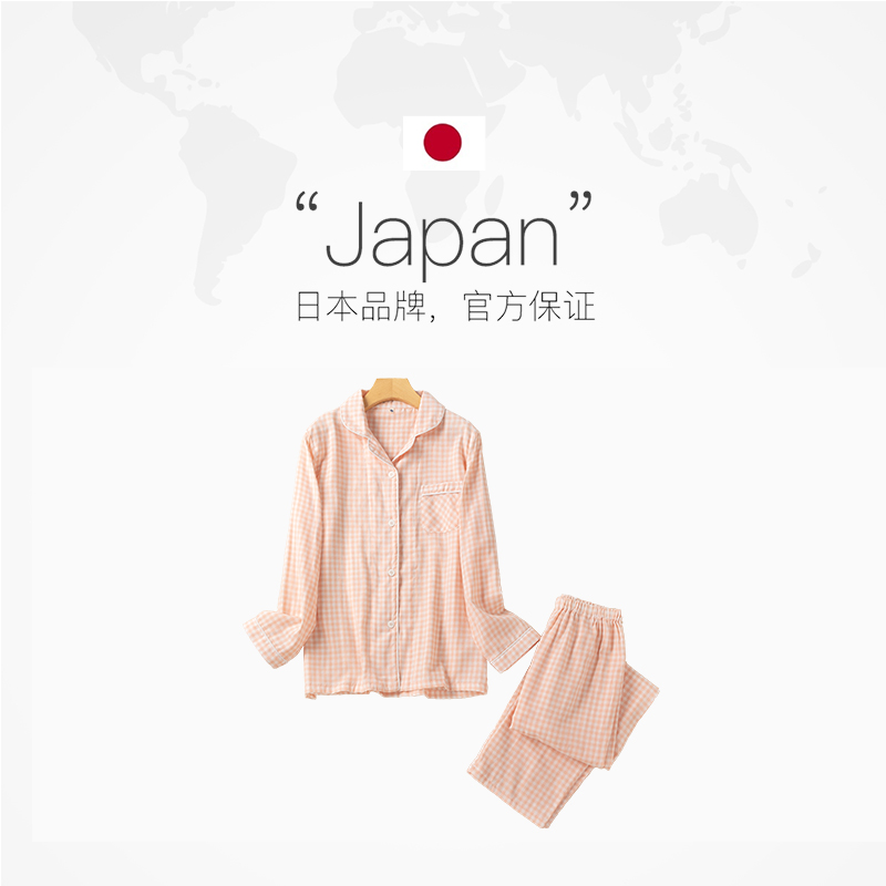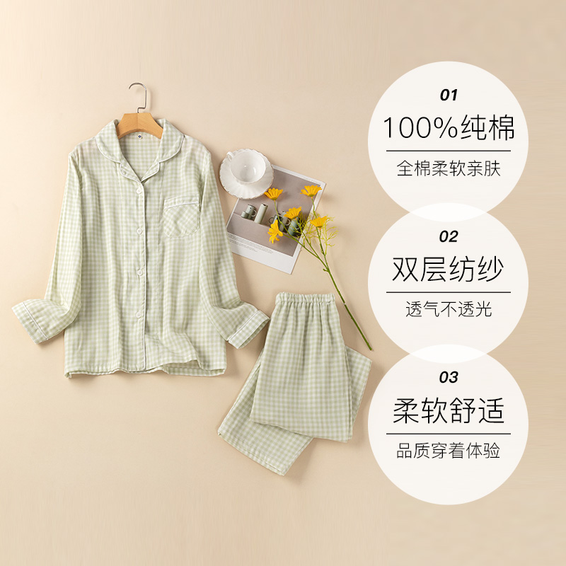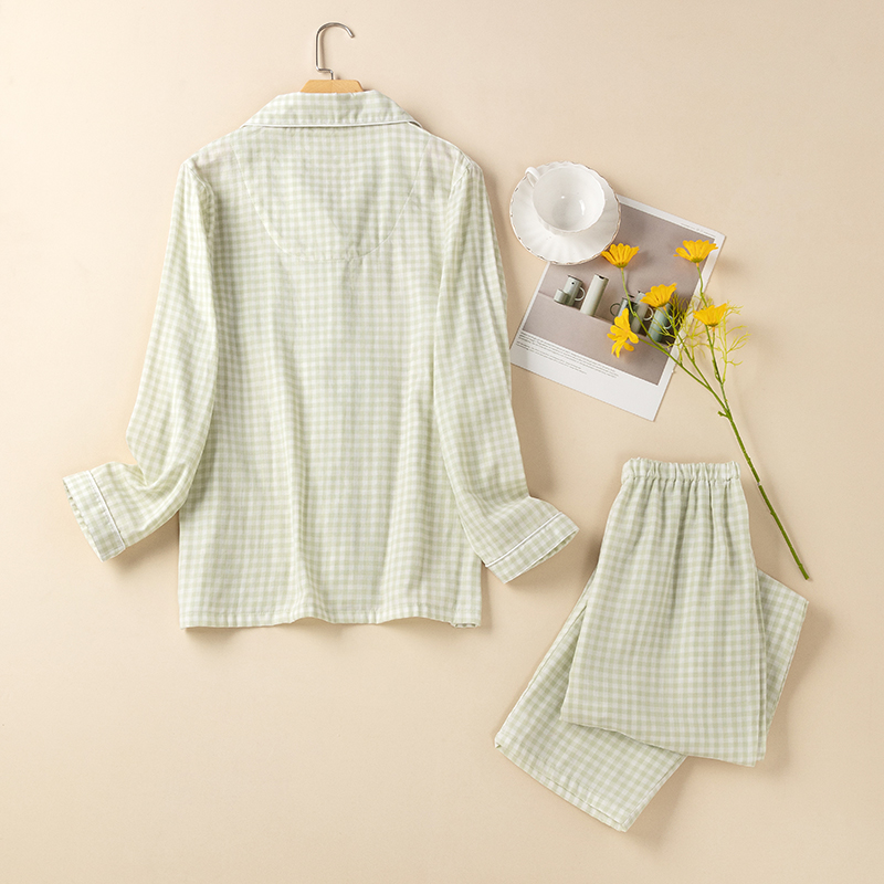 【自营】M.D.P.纯棉双层纱柔软亲肤透气清新格纹长袖女士家居服