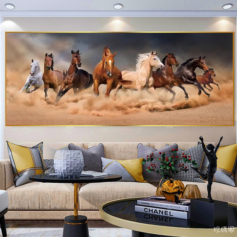 5d办公室2025新款钻石画方钻马到成功八骏图八匹马满粘贴钻十字绣