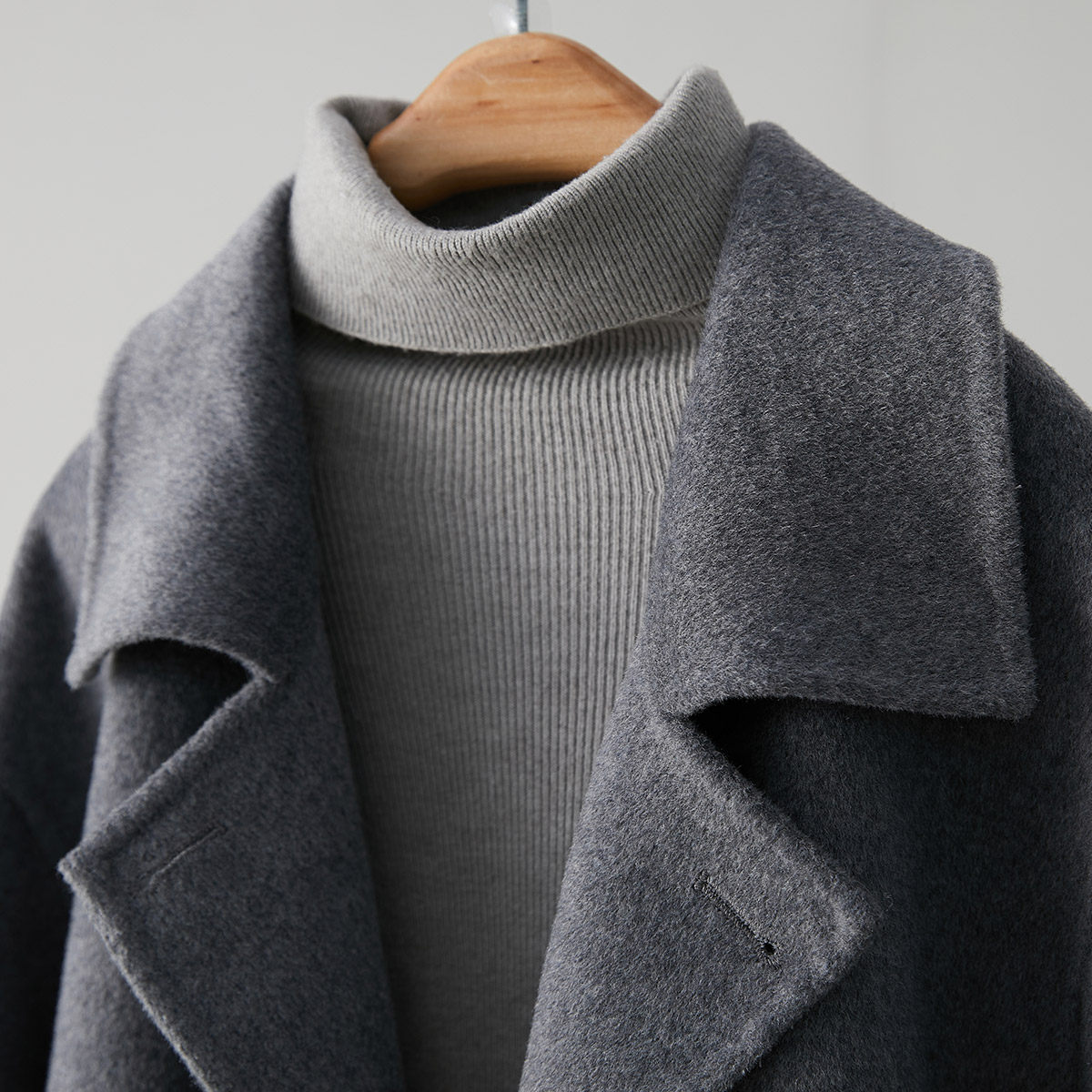 IHIMI2025冬季新款短款小翻领简约休闲手工双面呢绵羊毛大衣外套