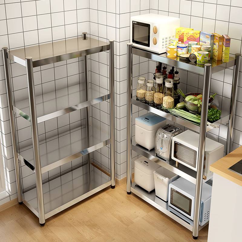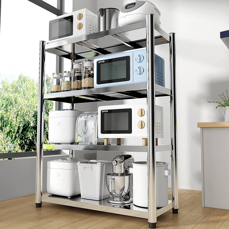 不锈钢厨房置物架落地多层微波炉烤箱储物橱柜货架收纳架子大容量