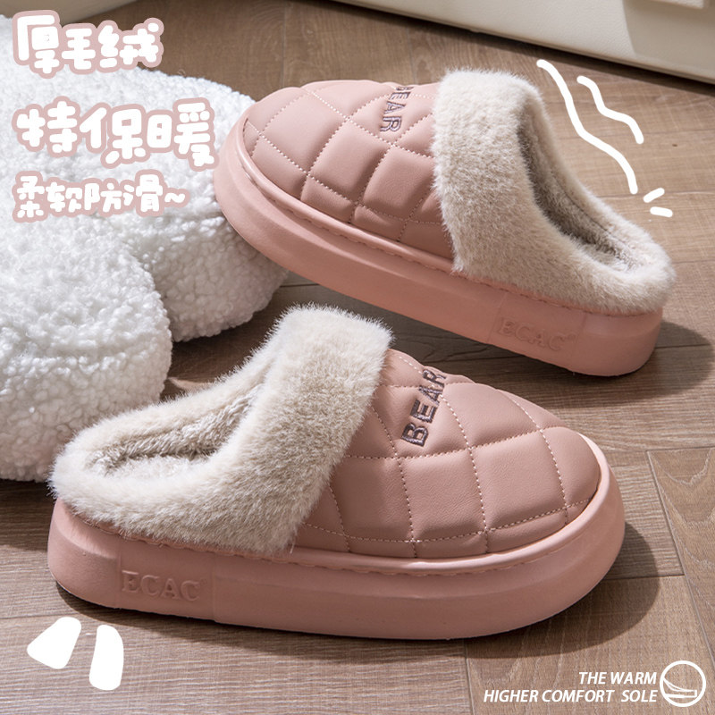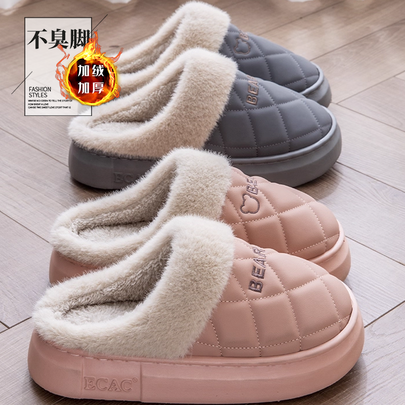防水棉拖鞋女士2025新款秋冬季室内居家加绒保暖厚底防滑毛绒棉拖