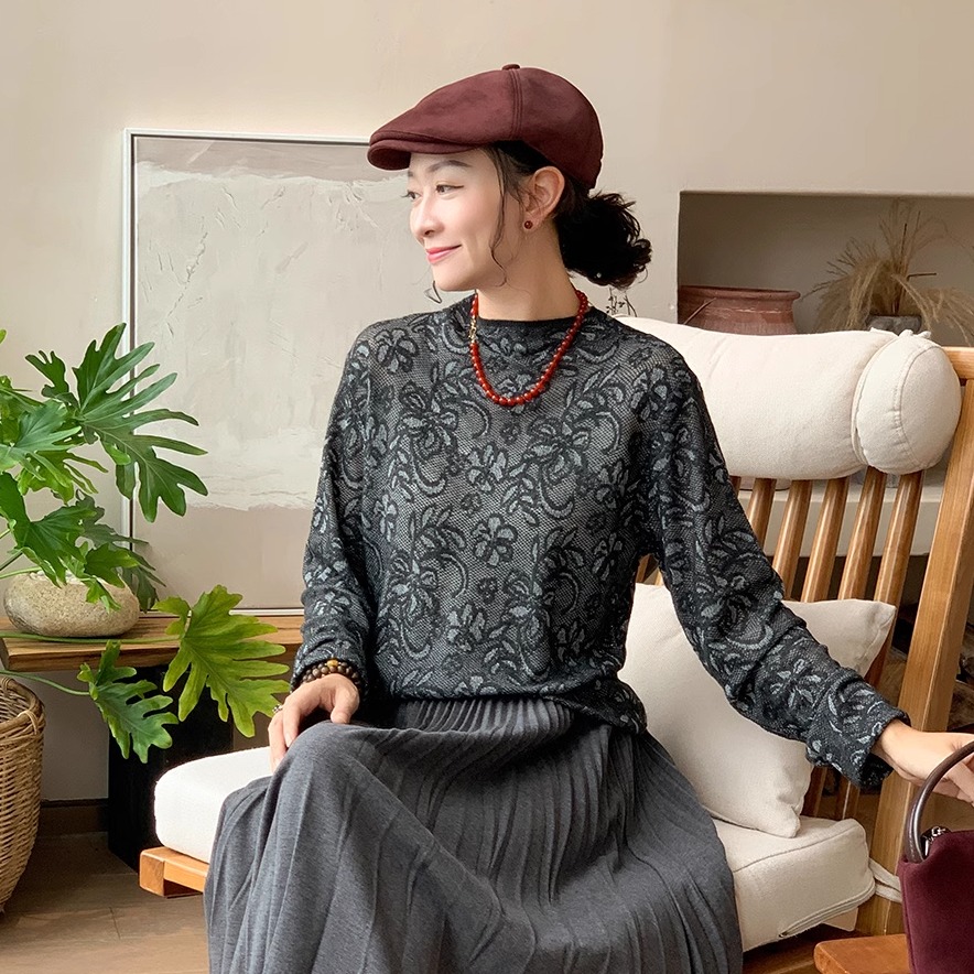 浮朵【气质勾花】秋冬针织精致感百搭复古半高领单穿叠穿羊毛衫