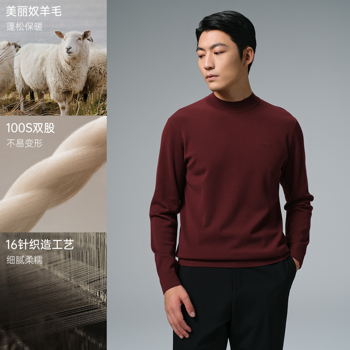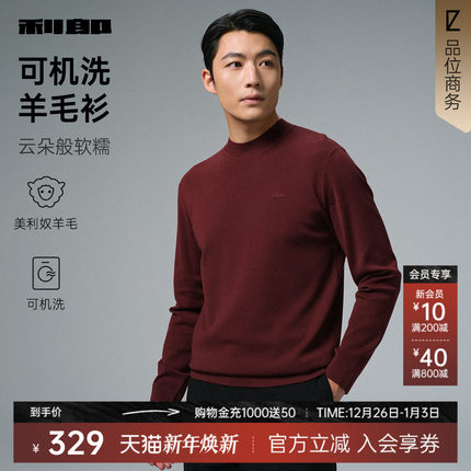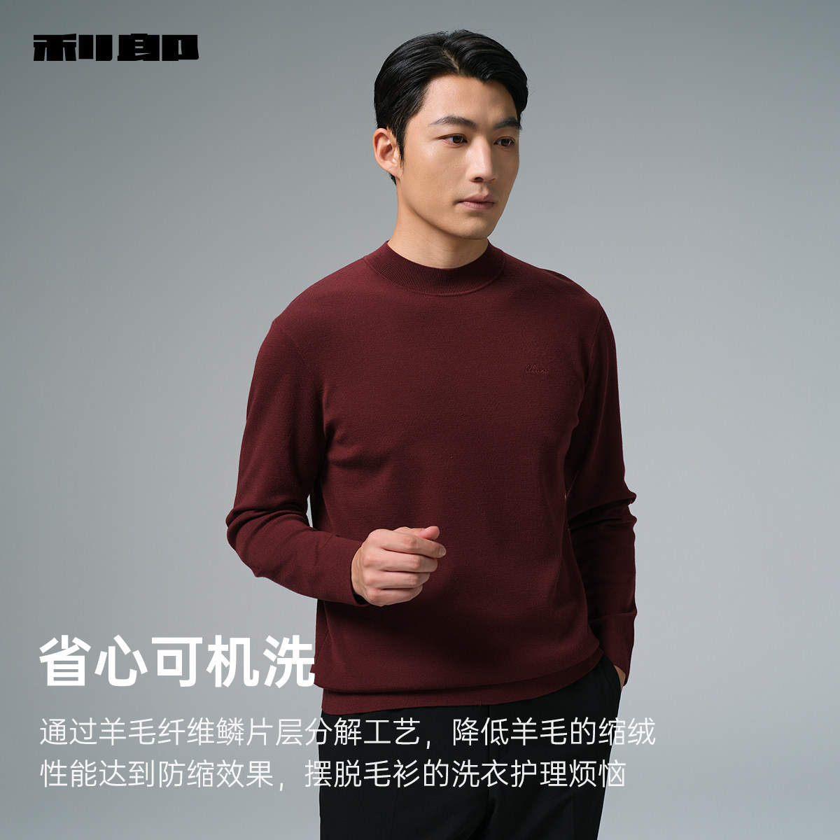 【可机洗羊毛】利郎红色羊毛衫男士半高领25冬季新年本命年毛衣