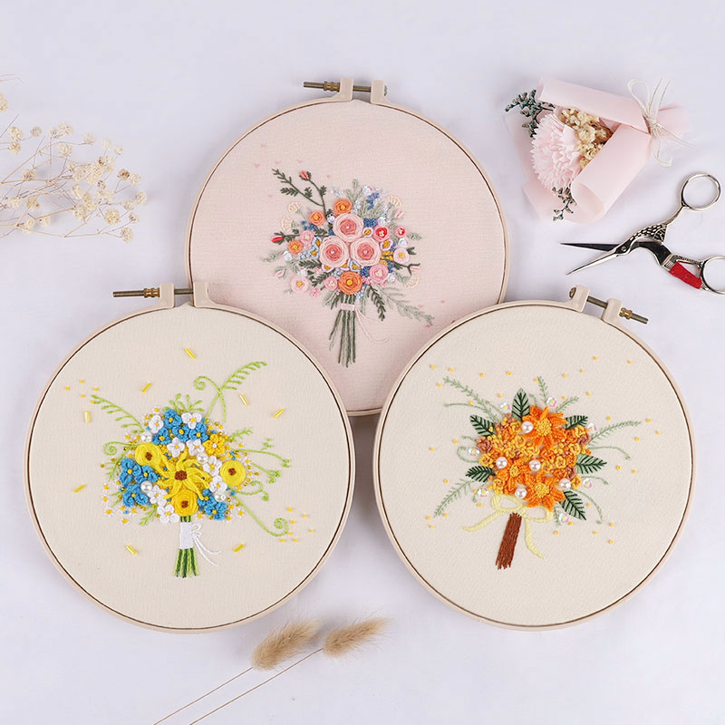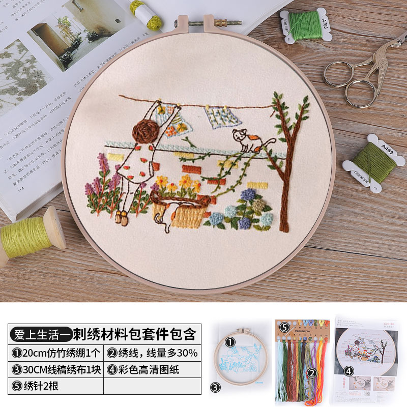 刺绣diy手工自绣材料包儿童团扇初学者制作戳戳绣苏绣丝带绣绣花