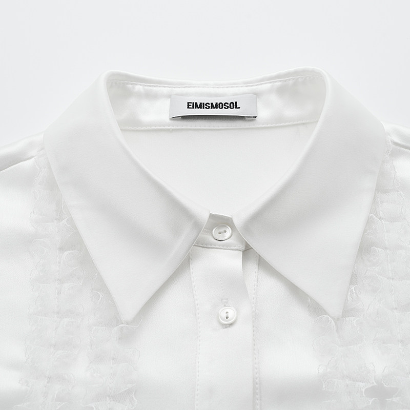 Eimismosol夏季新款白色衬衫女长款长袖蕾丝拼接醋酸宽松上衣