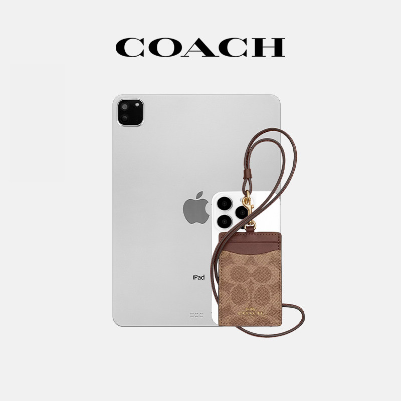 【圣诞礼物】COACH/蔻驰Lanyard 6经典老花女士迷你卡包零钱包