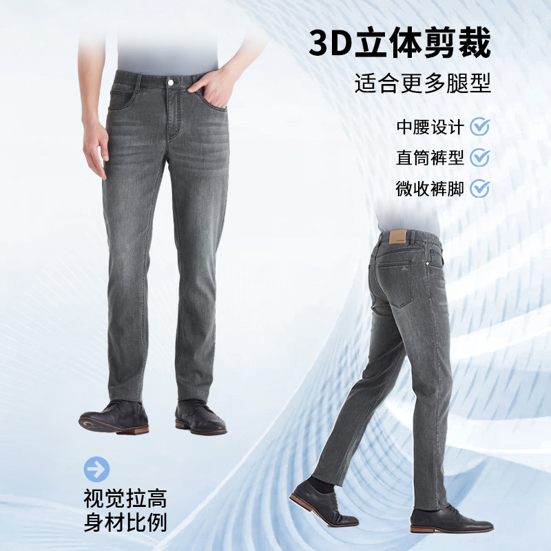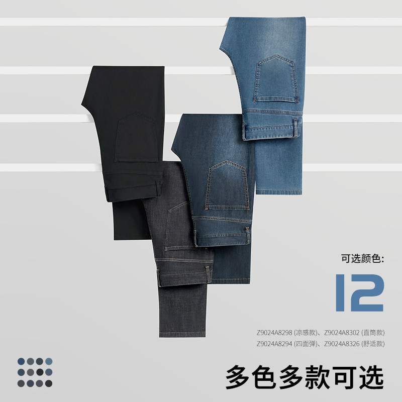 杉杉官方直筒牛仔裤男轻薄款2025夏季新款男士中腰休闲裤凉感长裤