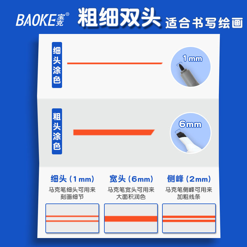 宝克可水洗软头马克笔MP2939儿童水性小学生双头水彩笔学生用美术专用不透色的24色36色48色美术生画笔彩笔