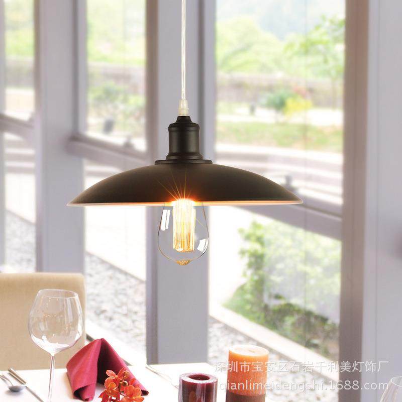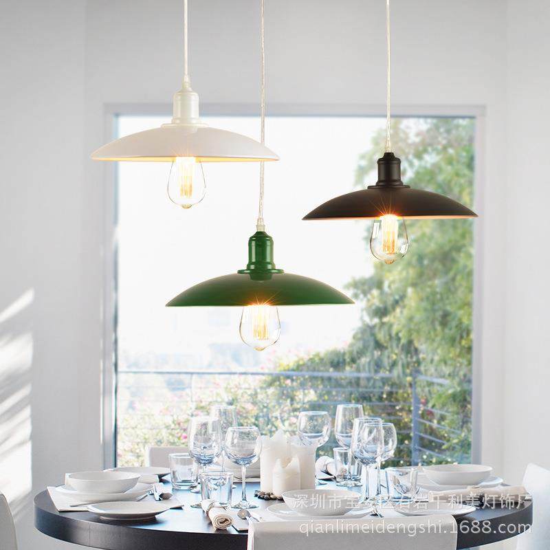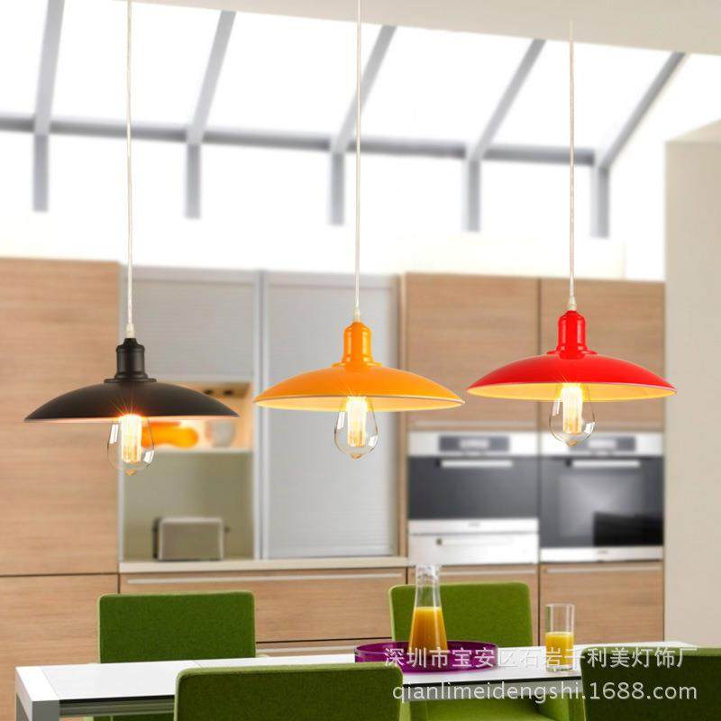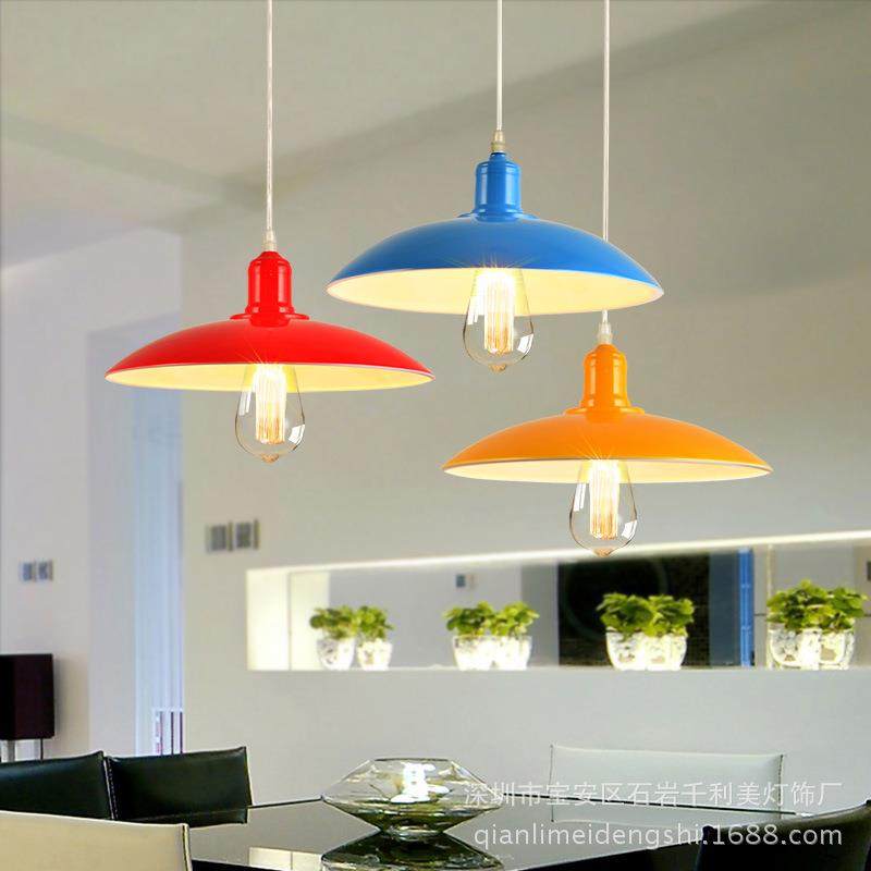 loft工业风吊灯彩色复古咖啡厅酒吧台餐厅楼梯装饰铁艺锅盖灯具