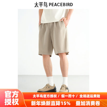 太平鸟男装休闲裤25秋新款宽松直筒中裤撞色抽绳运动百搭中短裤