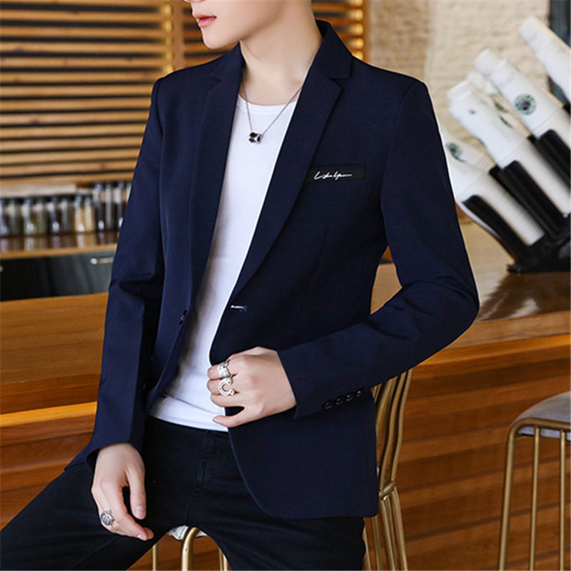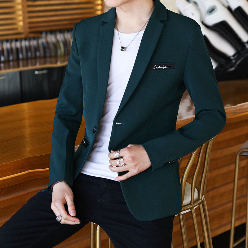 西装男士外套秋季青年韩版学生帅气单上衣红色小西装男休闲西服潮