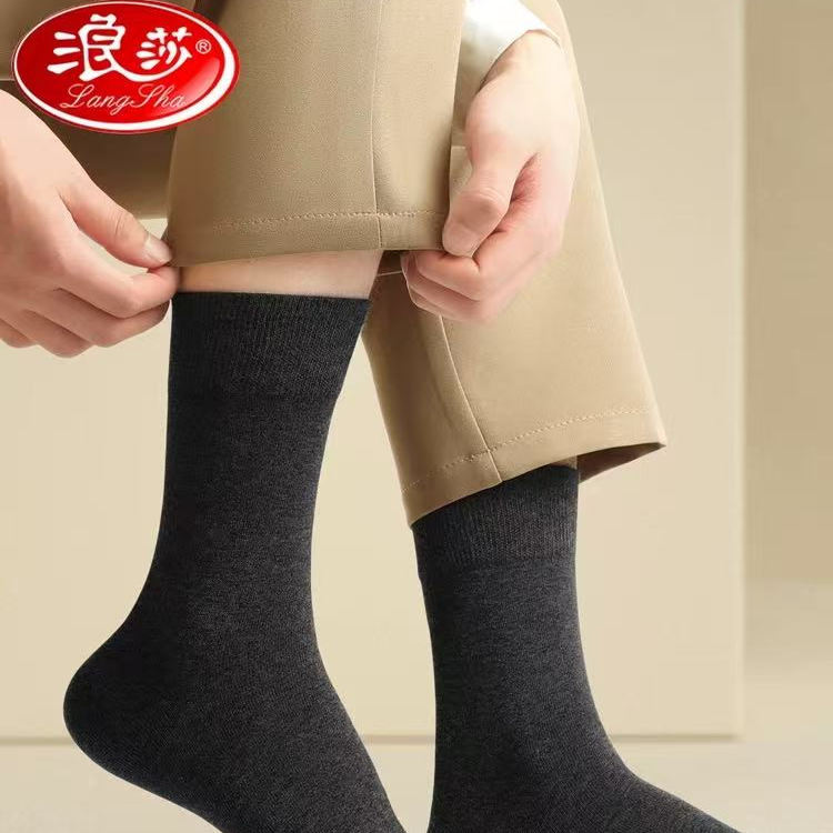 浪莎长筒袜男士秋冬季纯棉防臭吸汗男袜春秋高筒纯色商务男款长袜