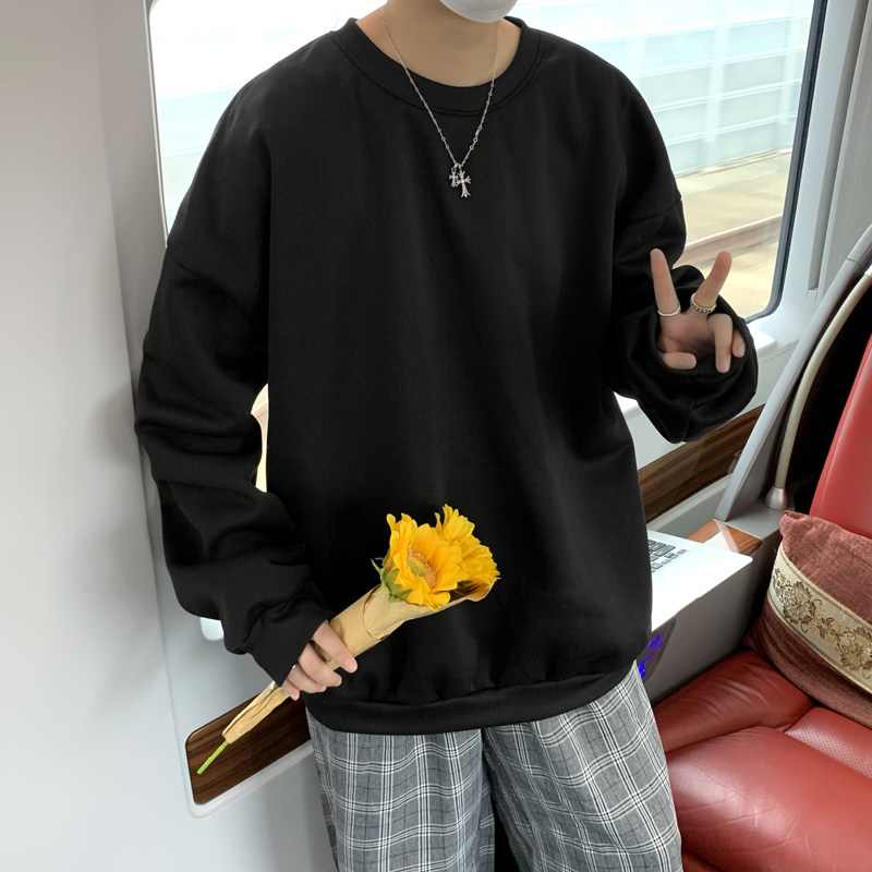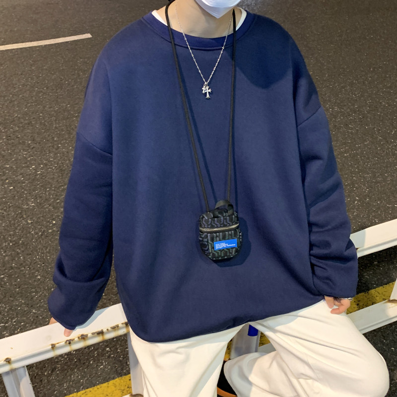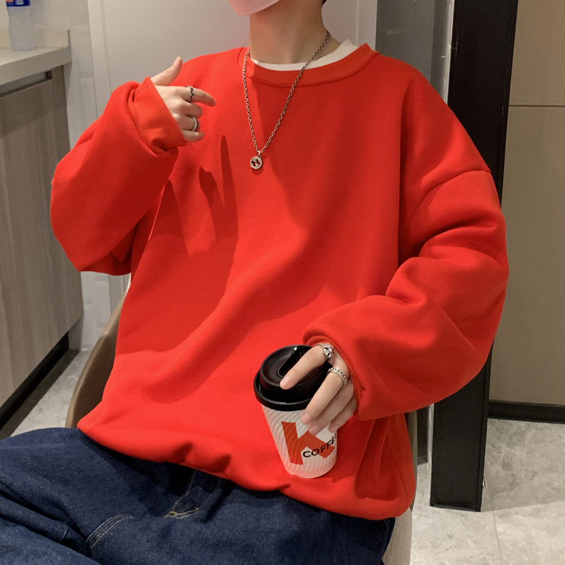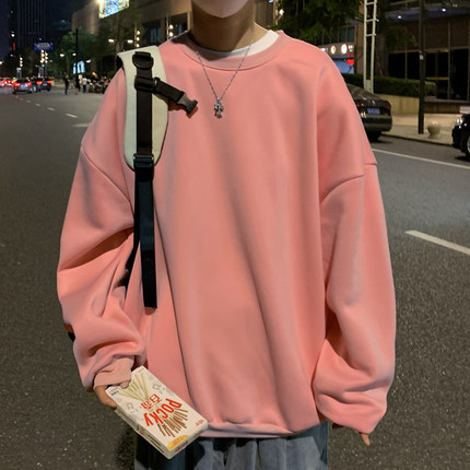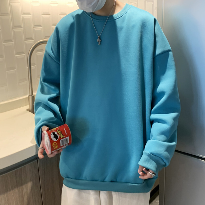2025秋冬季纯色百搭学生潮牌宽松港风情侣款加绒盐系圆领套头卫衣