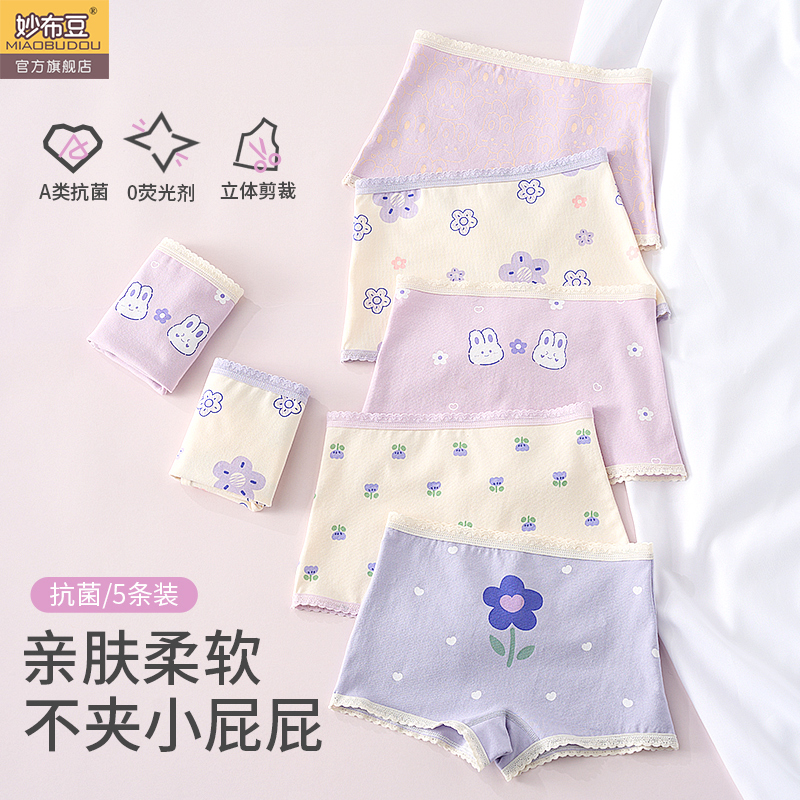 女童内裤纯棉儿童四角裤女宝宝5A抗菌舒适平角短裤小女孩全棉底裤
