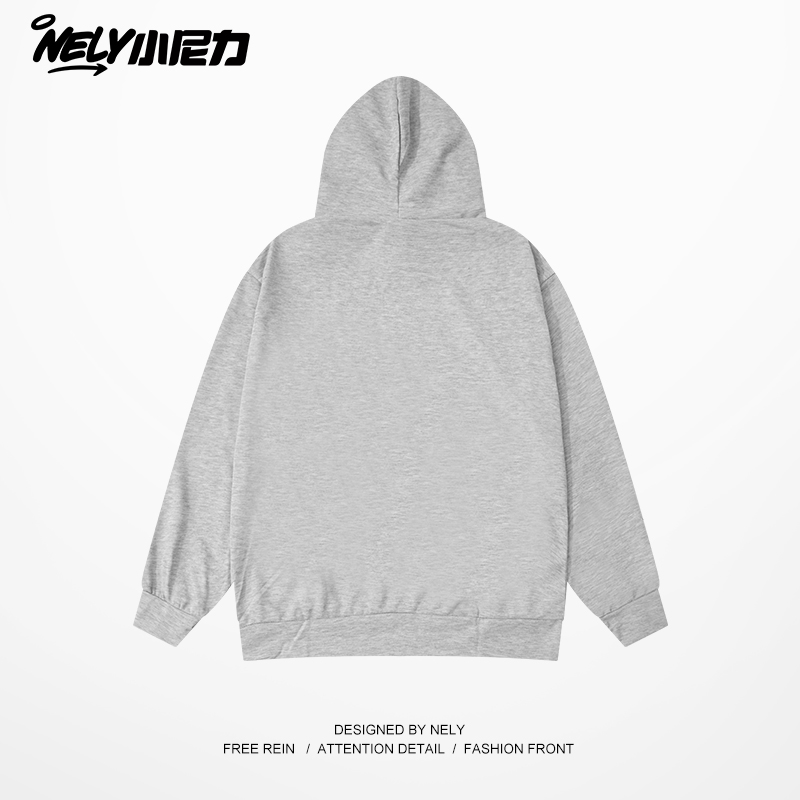 NELY小尼力潮牌美式高街字母灰色连帽卫衣男女秋冬情侣款帽衫外套