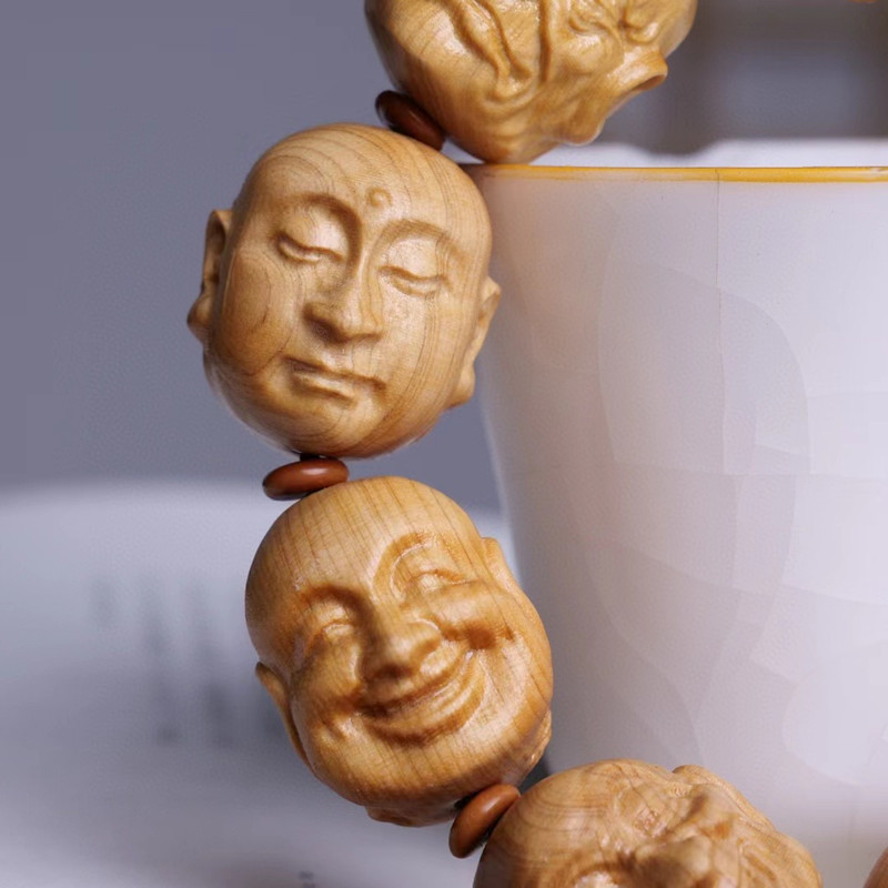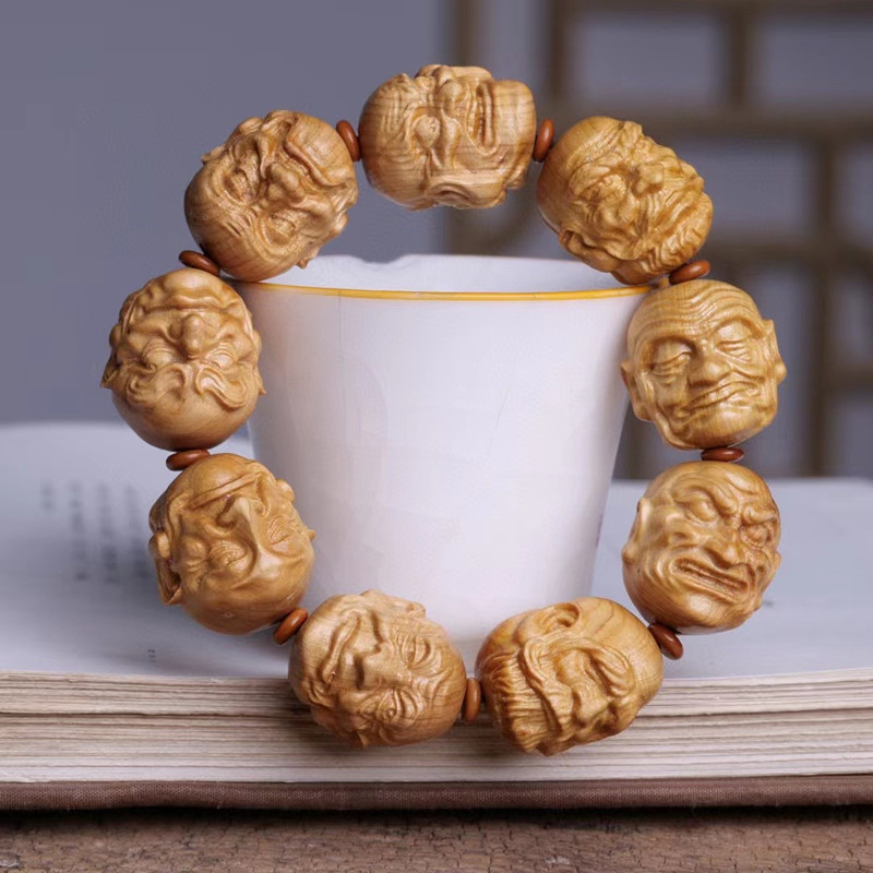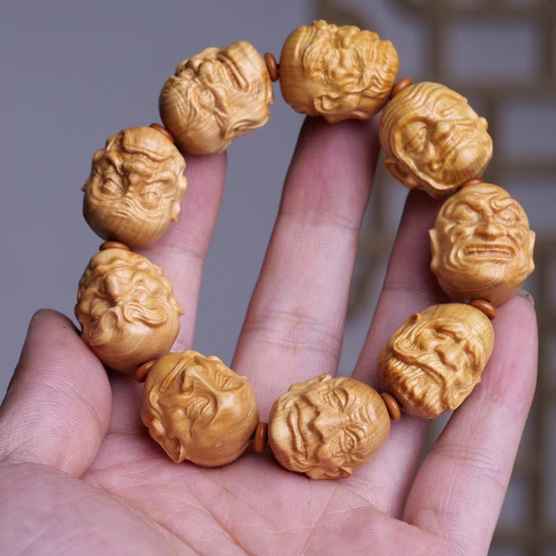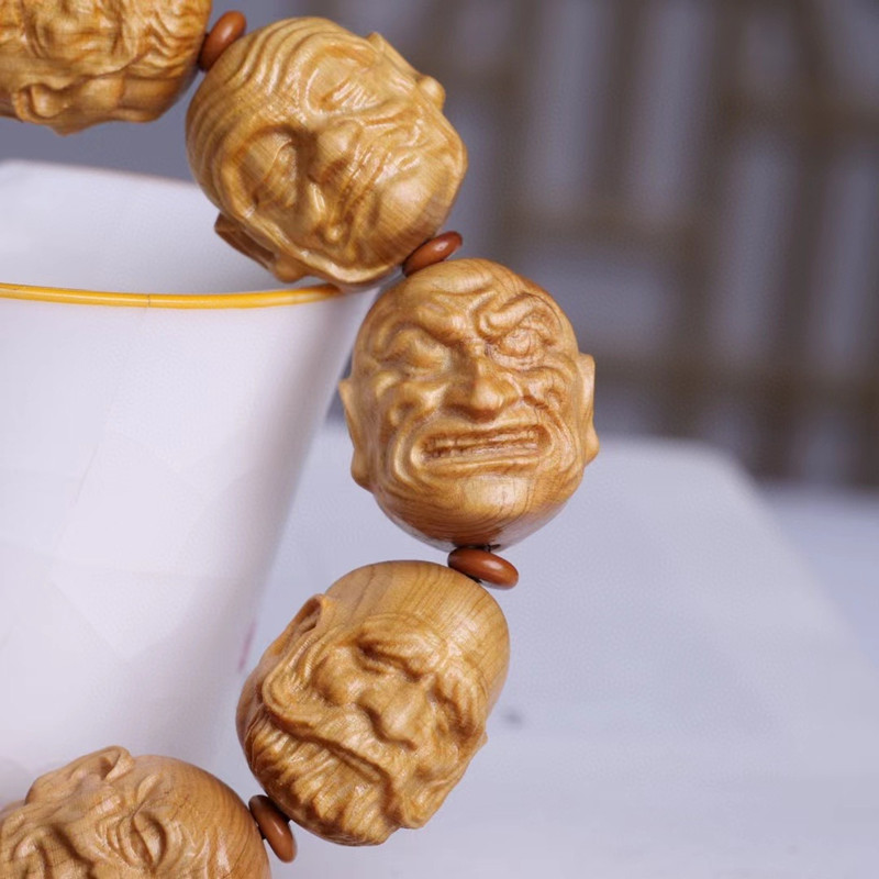 天然太行崖柏十八罗汉手串精雕刻降龙罗汉佛像文玩佛珠手链男士款