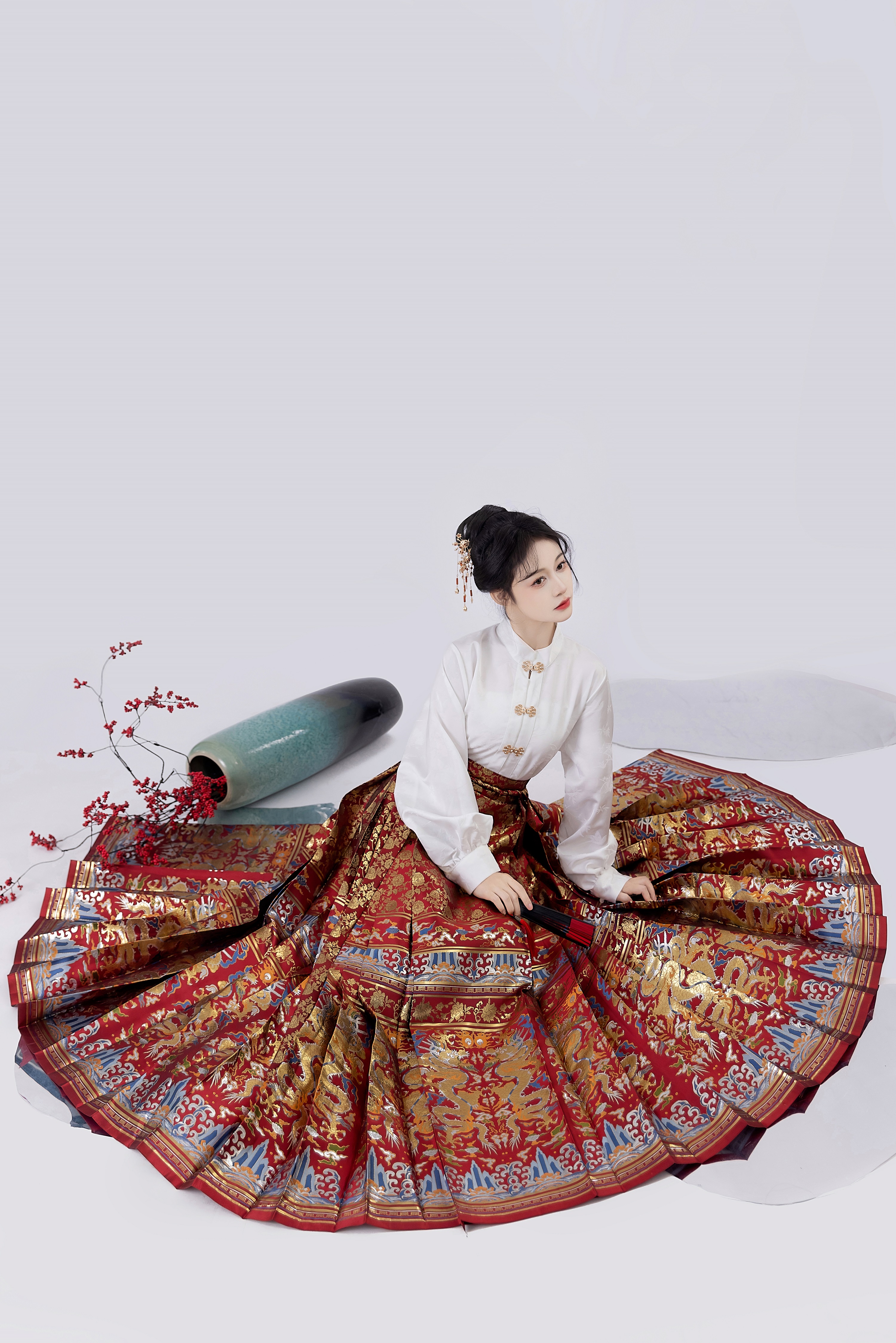 明制汉服马面裙女原创仿妆花织金满地金国风拜年高端重工九龙行天