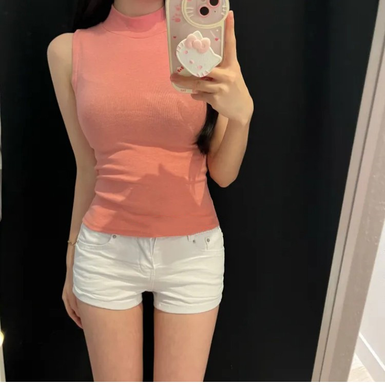 性感纯欲半高领显胸无袖T恤女夏韩版紧身打底衫时尚气质百搭上衣