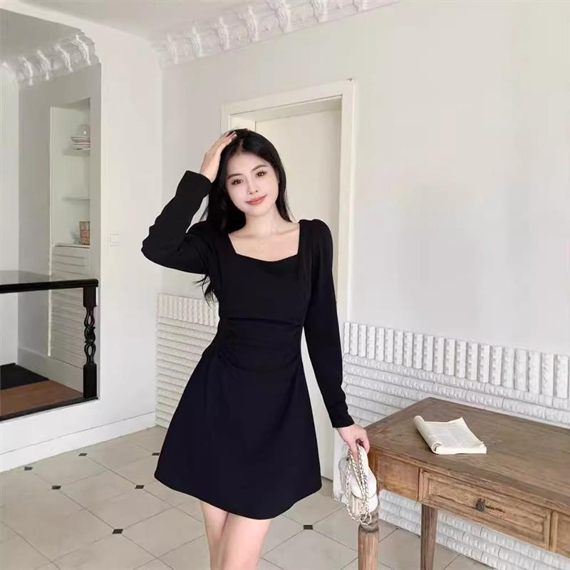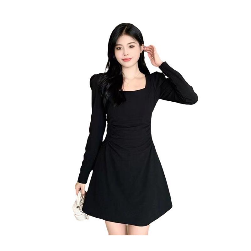 赫本风黑色长袖连衣裙子女2025春秋法式茶歇小个子高级感收腰短裙