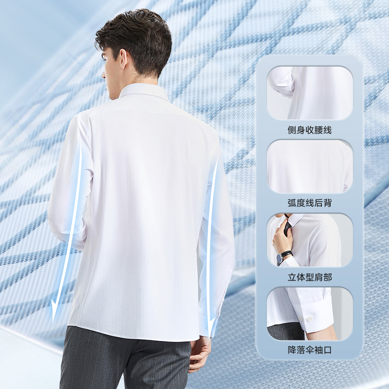 【含莫代尔】柒牌男士长袖衬衫秋季新款商务正装白色翻领衬衣