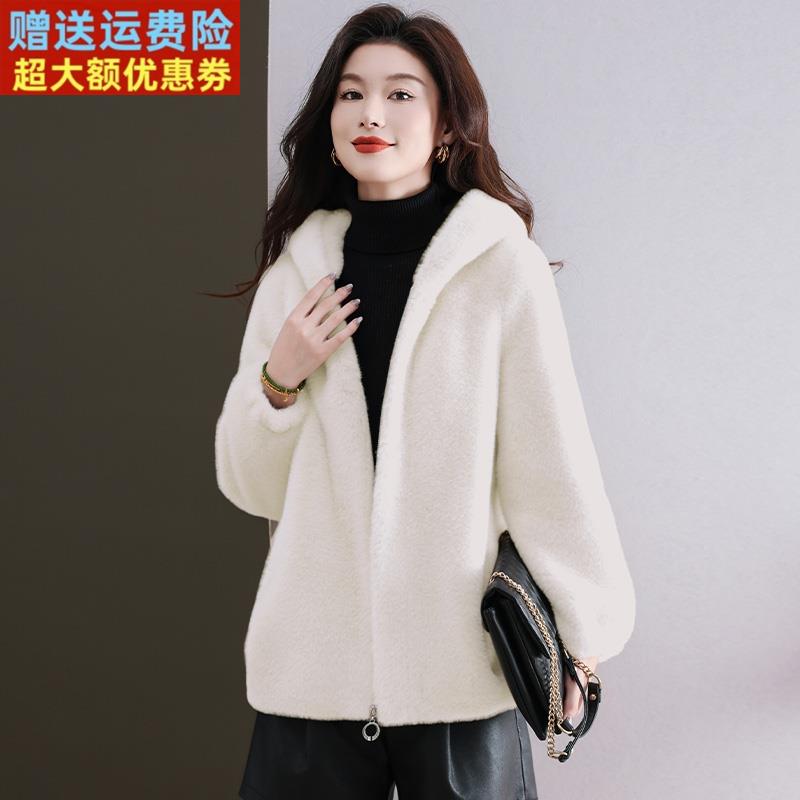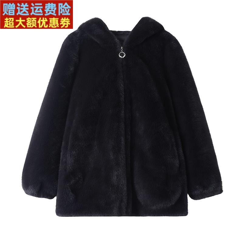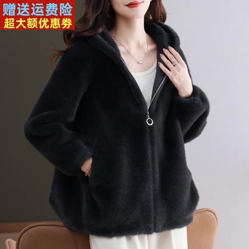 水貂绒皮草大衣外套女开衫短款拉链连帽衫宽松大码羊毛衫秋冬新款