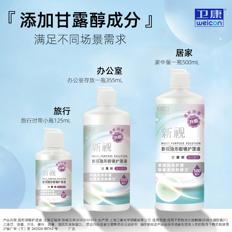 宝岛眼镜卫康新视清凉护理液隐形眼镜美瞳护理液大小瓶清洁除蛋白