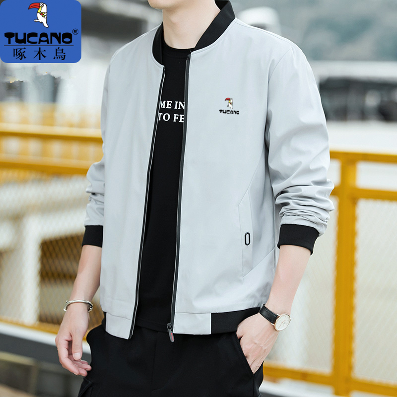 青年大码立领夹克男春秋季新款纯色外套男士休闲百搭加绒加厚上衣