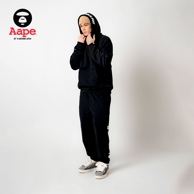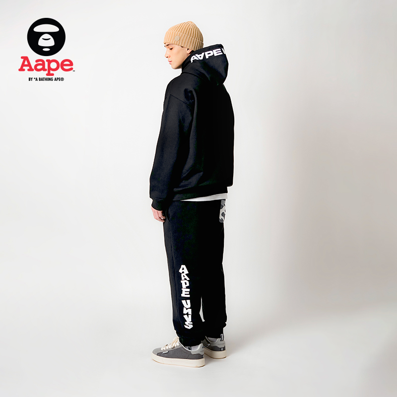 Aape旗舰店男装秋冬小标徽章纯色简约潮流薄绒连帽卫衣C354XXP