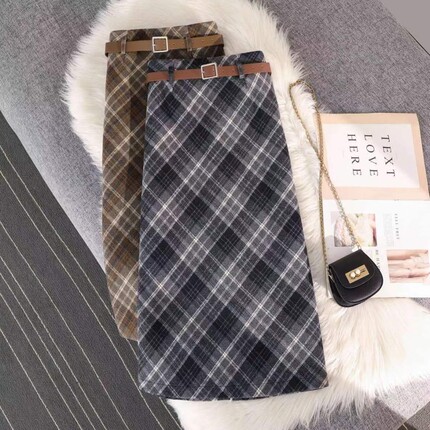 格子毛呢半身裙女2025秋冬显瘦