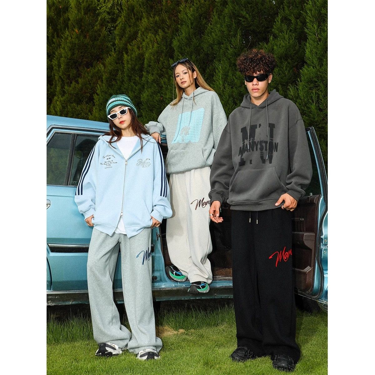 加绒加厚美式潮牌男生休闲长裤秋冬季直筒宽松卫裤青少年运动裤子