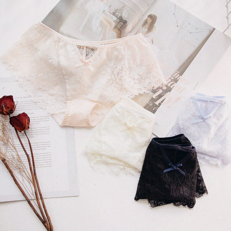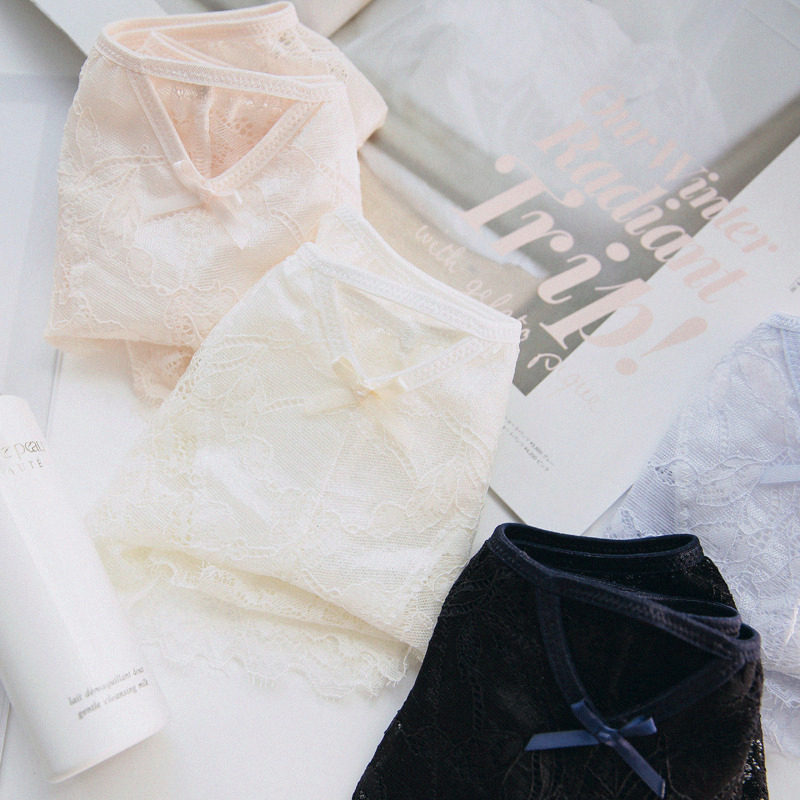 蕾丝内裤女 蝴蝶结性感女生纯棉裆中低腰V形日系甜美少女三角裤